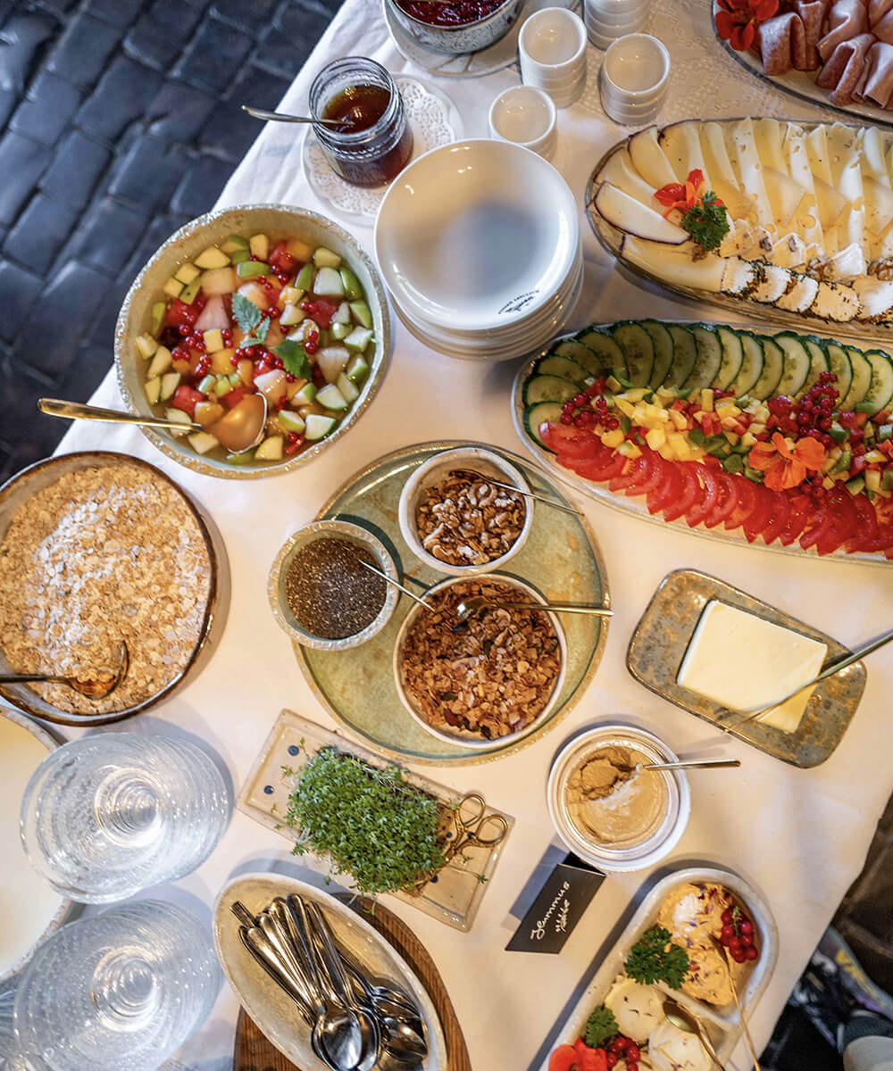 Brot vom lokalen Bäcker, Käse von heimischen Höfen, Kräuter direkt aus unserem Garten, Kaffee aus der regionalen Manufaktur.