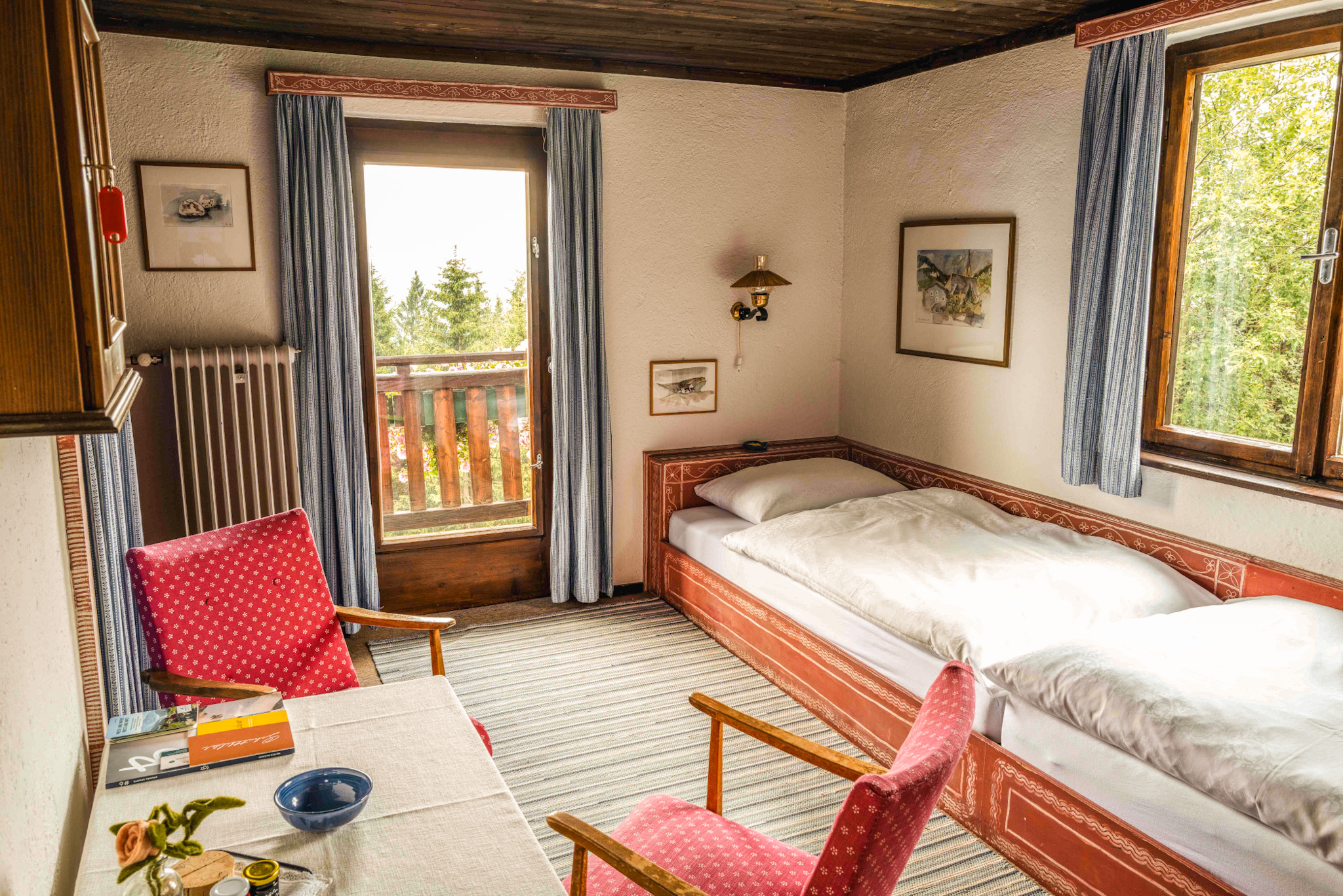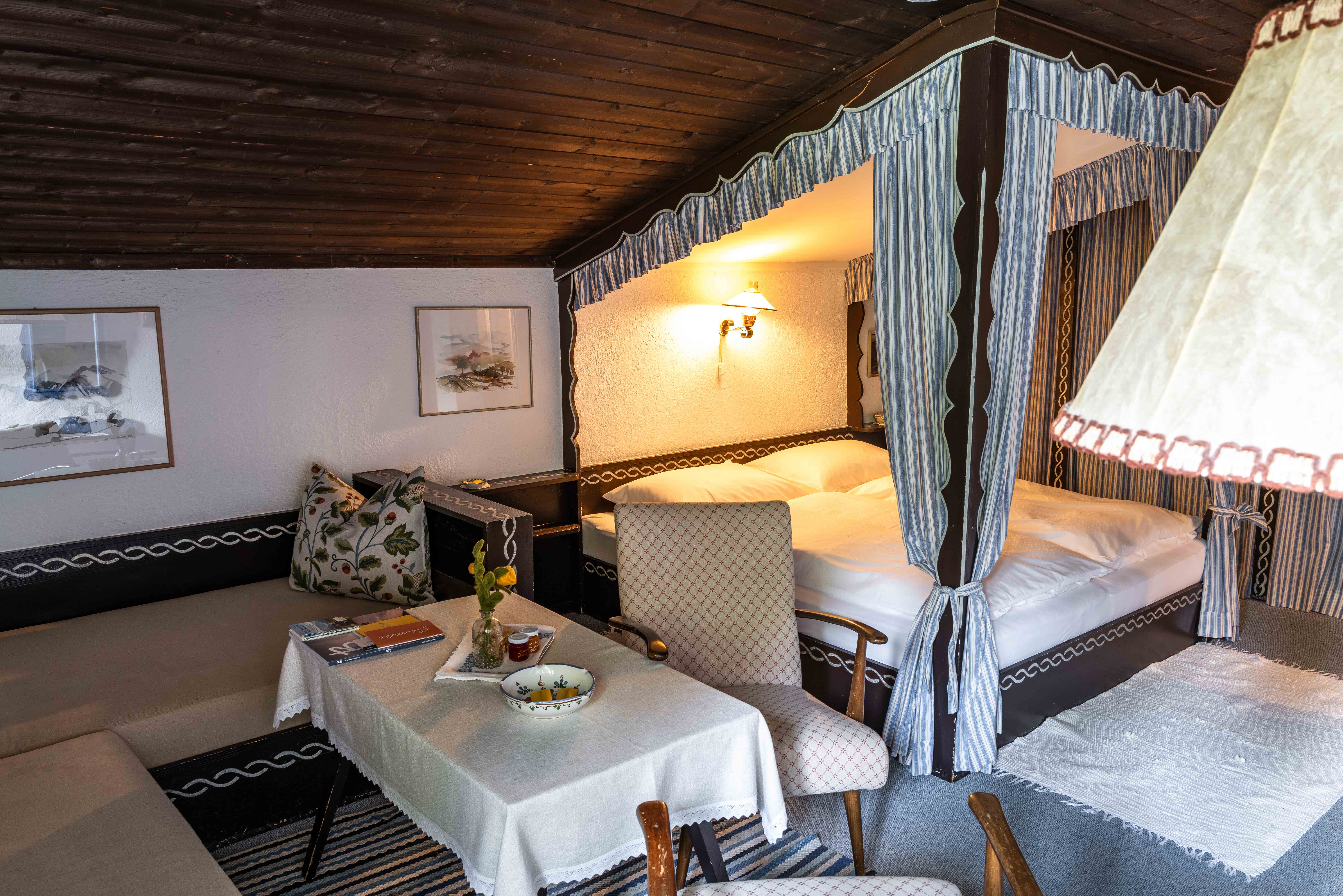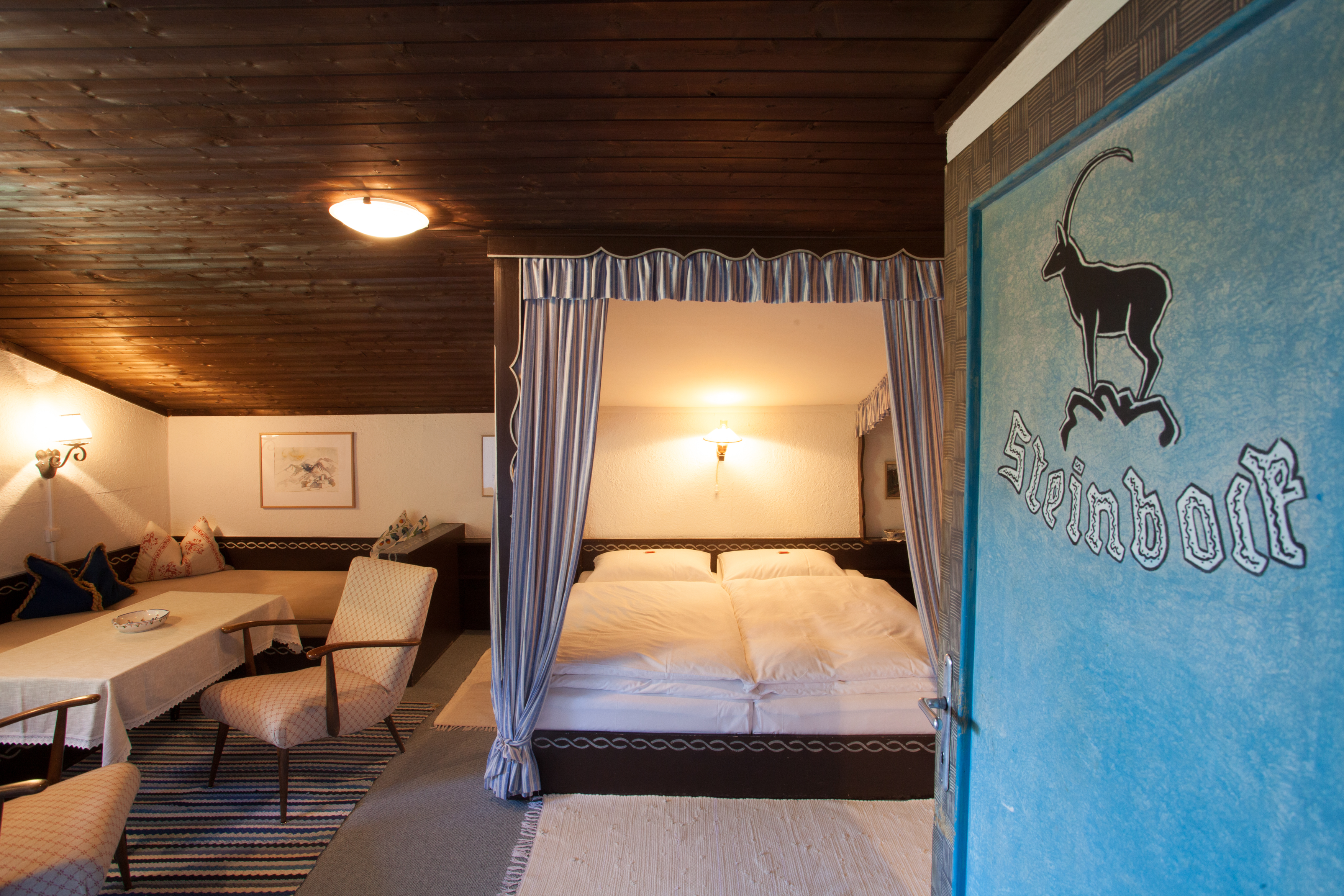 Die Zimmer auf der Sonnalm erzählen Geschichten, ohne viele Worte. Jedes einzelne wurde von Kurt Blaickner mit seinen eigenen Händen geschaffen. Kein Raum gleicht dem anderen, keine Wand ist einfach nur gestrichen. Jede Farbe wurde bewusst gewählt, jede Holzverkleidung mit Liebe verarbeitet. Die Kunst an den Wänden? Handgemalte Motive von Kurt selbst. Die Bilder? Gemalt von seiner Frau Irmgard Blaickner. Seit Jahrzehnten bleibt die Sonnalm ihrem Stil treu – authentisch, liebevoll, verwurzelt in der Natur. Kein Ort der modernisiert wurde, um Trends zu folgen.