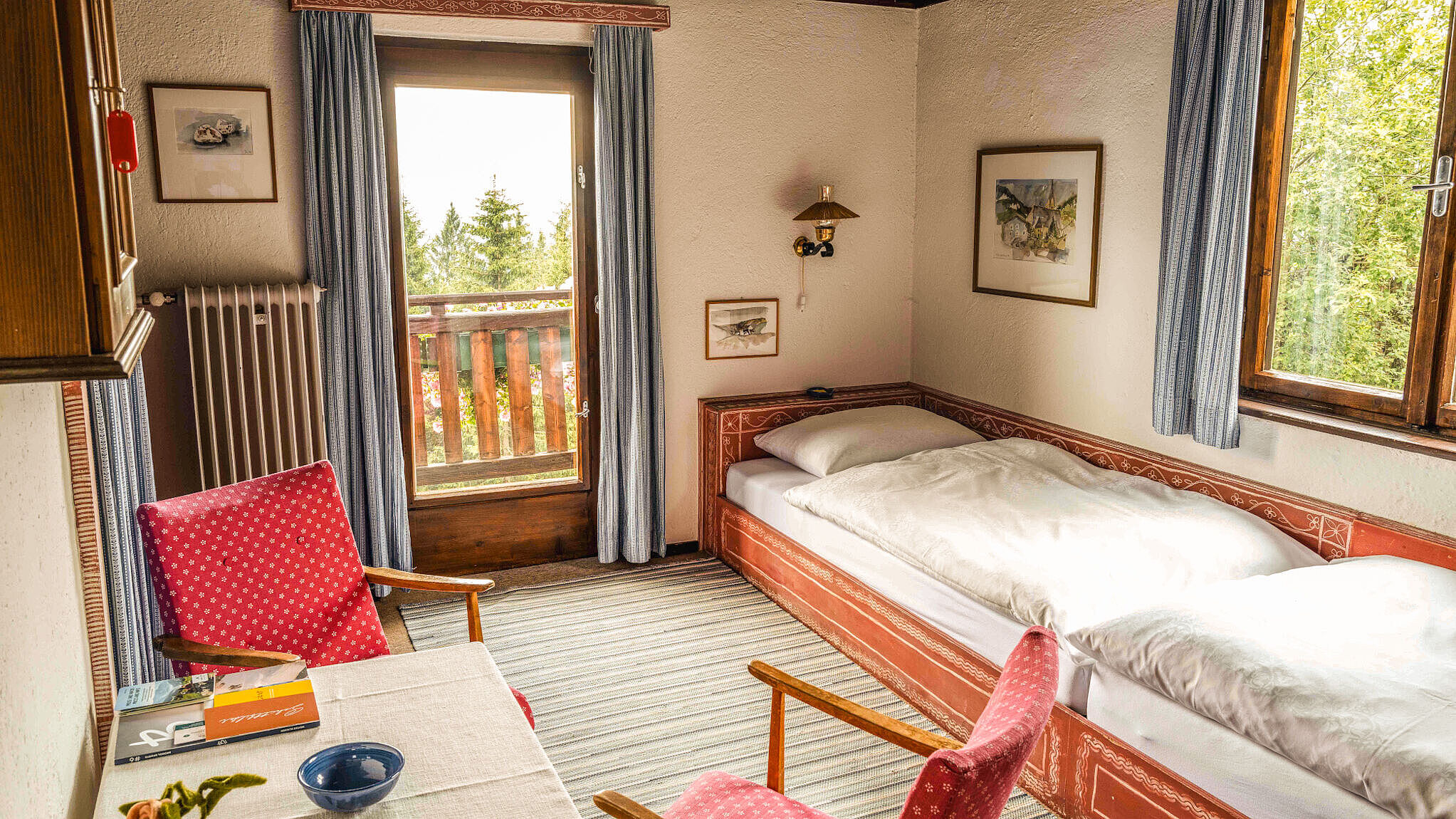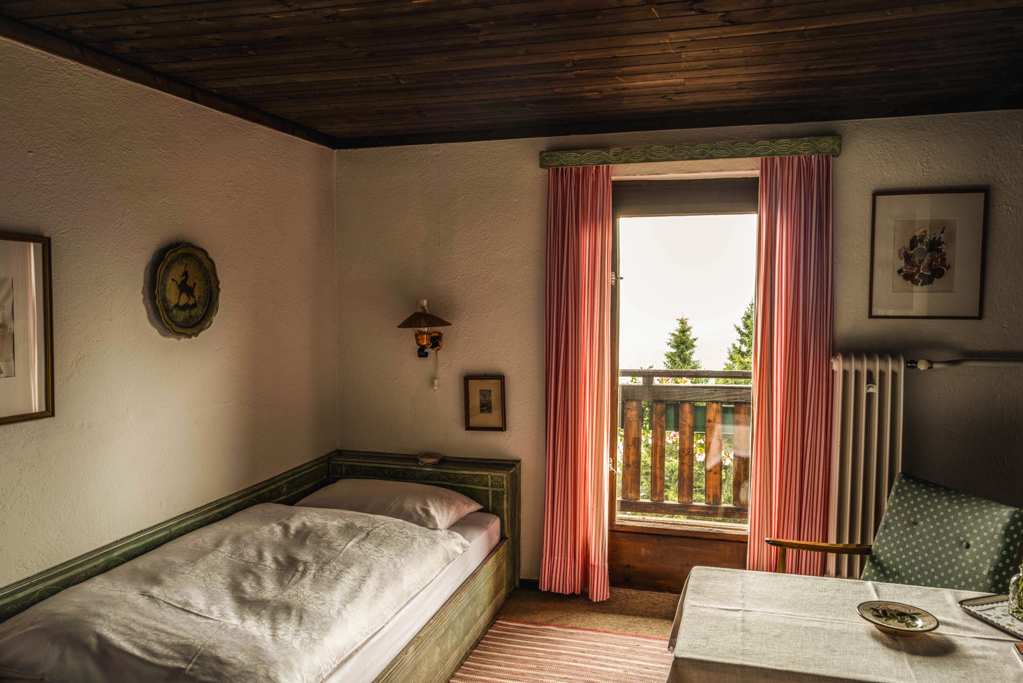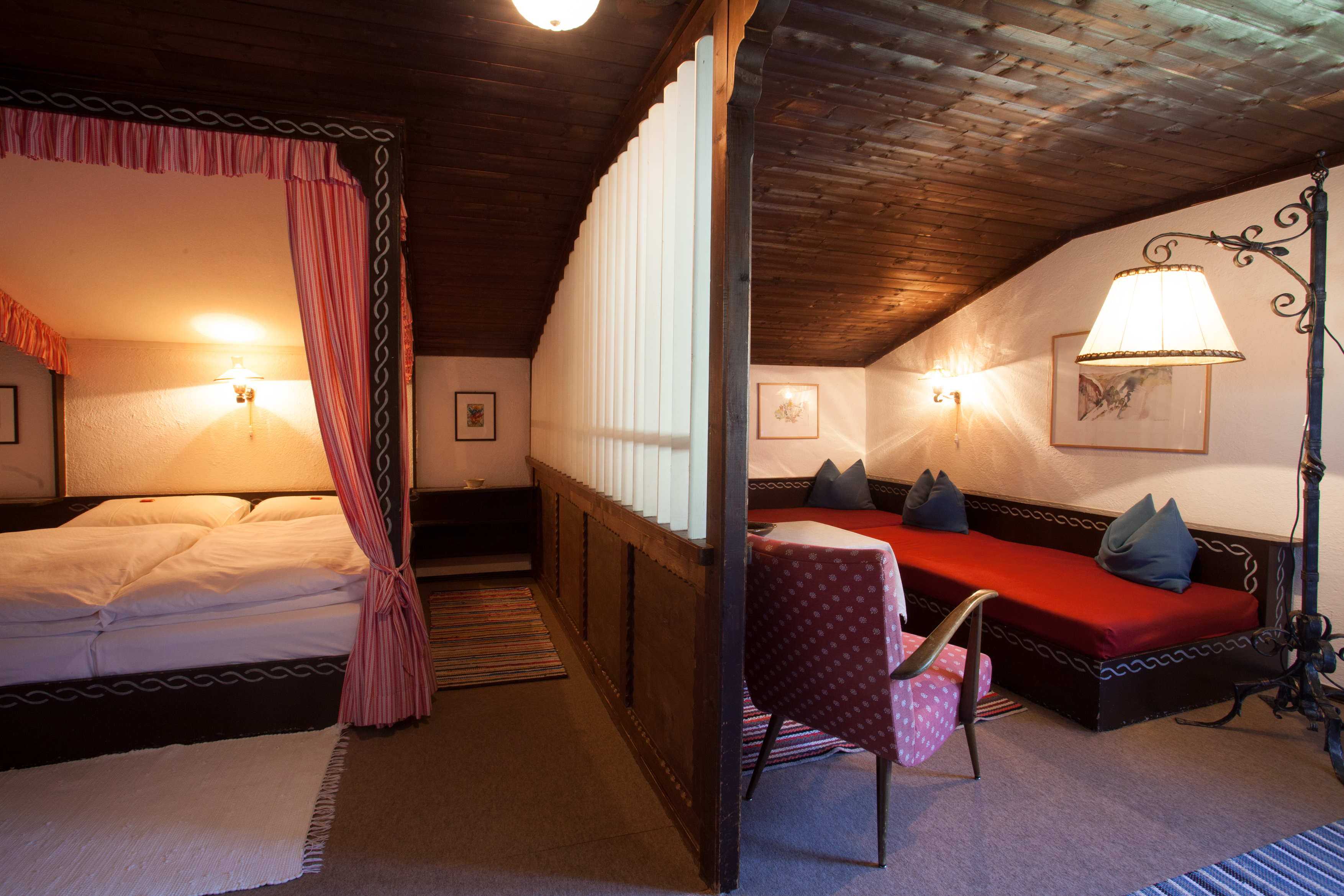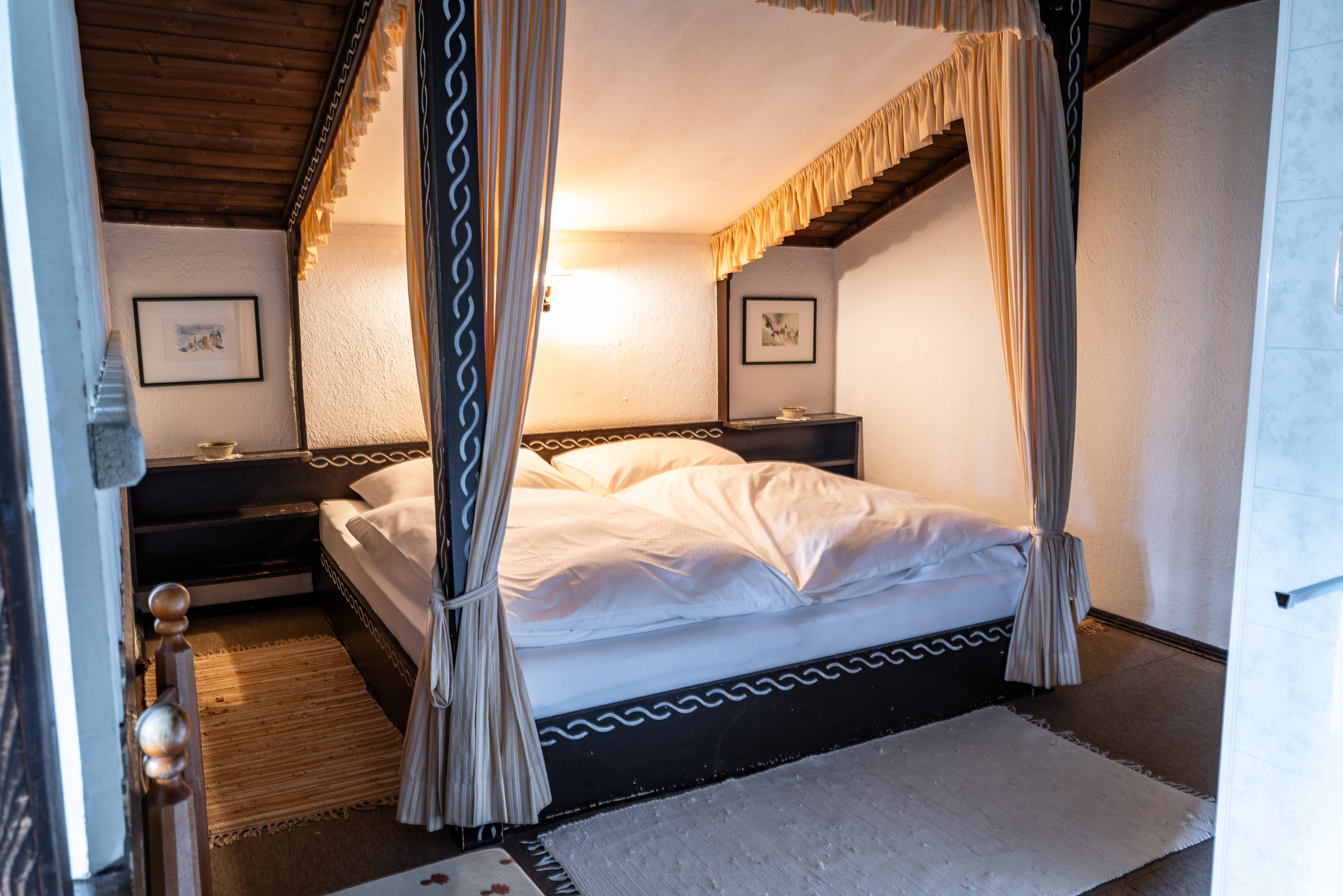 Die Zimmer auf der Sonnalm erzählen Geschichten, ohne viele Worte. Jedes einzelne wurde von Kurt Blaickner mit seinen eigenen Händen geschaffen. Kein Raum gleicht dem anderen, keine Wand ist einfach nur gestrichen. Jede Farbe wurde bewusst gewählt, jede Holzverkleidung mit Liebe verarbeitet. Die Kunst an den Wänden? Handgemalte Motive von Kurt selbst. Die Bilder? Gemalt von seiner Frau Irmgard Blaickner. Seit Jahrzehnten bleibt die Sonnalm ihrem Stil treu – authentisch, liebevoll, verwurzelt in der Natur. Kein Ort der modernisiert wurde, um Trends zu folgen.
